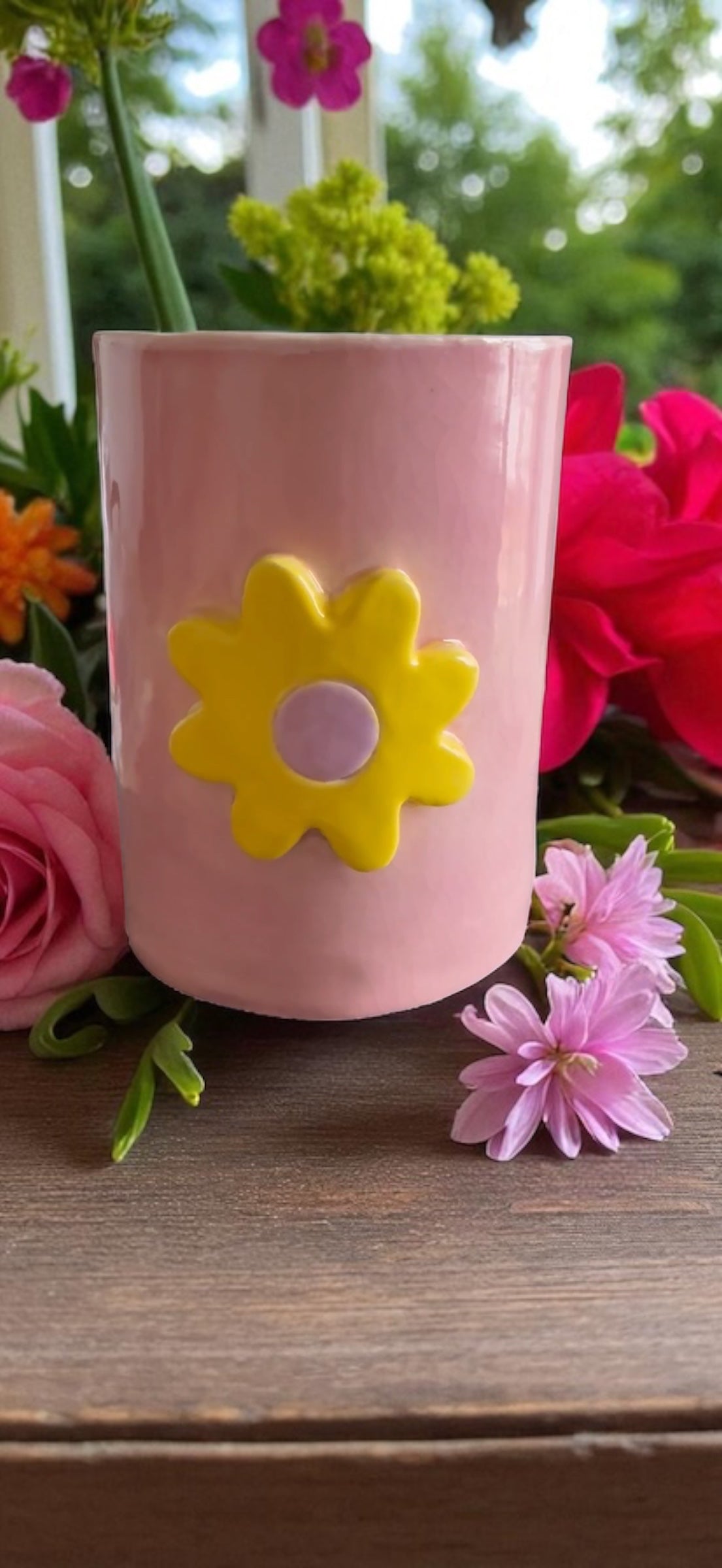 Fill your space with color and creativity with this hand-painted ceramic pitcher in vibrant, modern tones. Perfect as a vase or as an organizer for pencils, paintbrushes, and other desk accessories. Its cheerful design makes it a decorative accent that adds freshness and personality to any space.