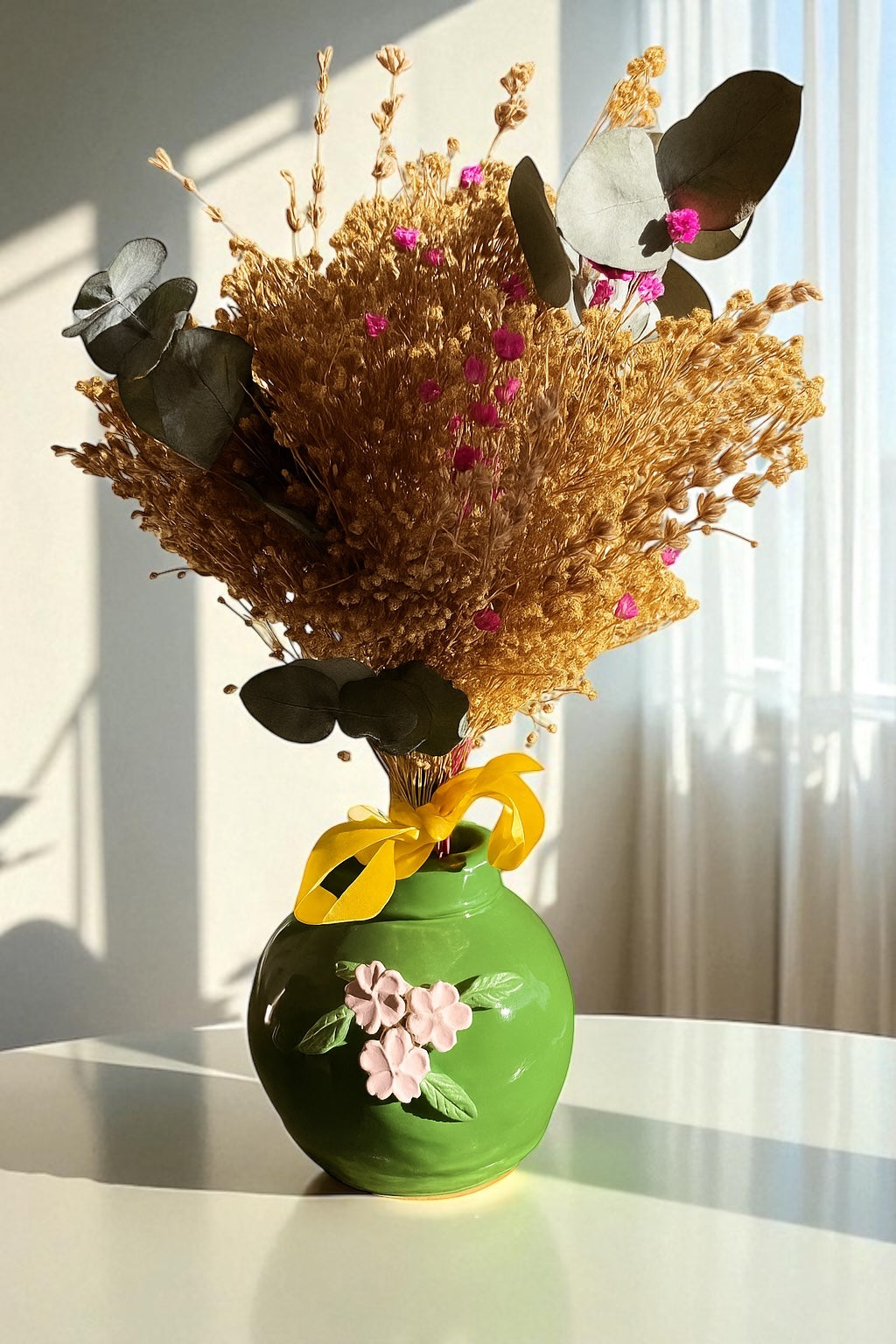 Ideal for decorating shelves, side tables, or special corners of the home. It can be used as a dried vase or simply as a decorative piece.