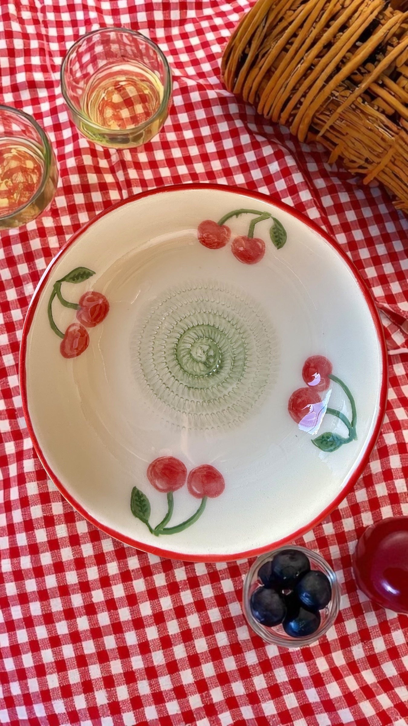 Plato rallador de cerámica pintado a mano - Cerezas (nuevo modelo)
